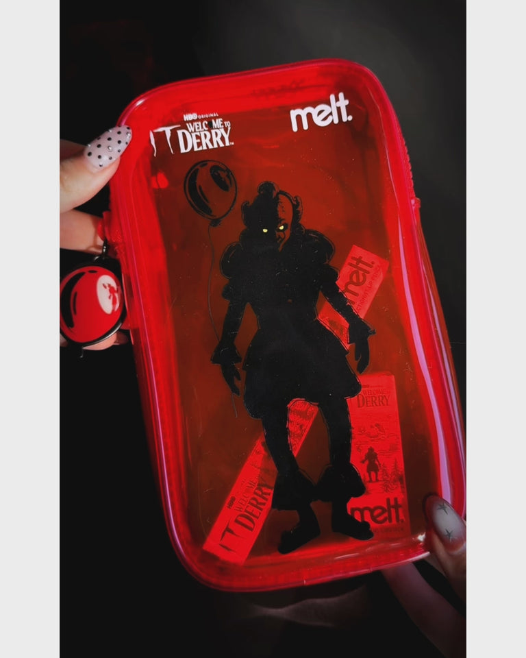 Housed in a semi-transparent shiny red vinyl bag with Pennywise™ and a balloon zipper pull, the set captures the impending doom in Derry, where every detail feels just slightly… off.